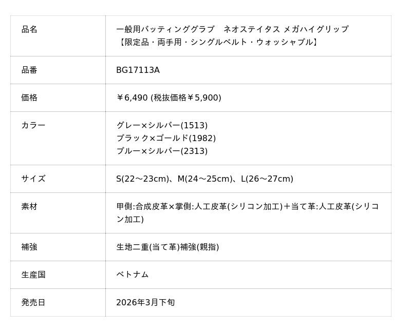 「ベースボールを科学する。」ゼット株式会社(本社/大阪市天王寺区、代表取締役社長/渡辺裕之)は、軟式野球と真剣に取り組むプレーヤーに向けて強力なグリップ力を発揮する一般用バッティンググラブ【ネオステイタス メガハイグリップ 限定モデル】を発売しました。