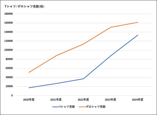 ■年度別ビジネスTシャツ・ポロシャツの全体売上数推移