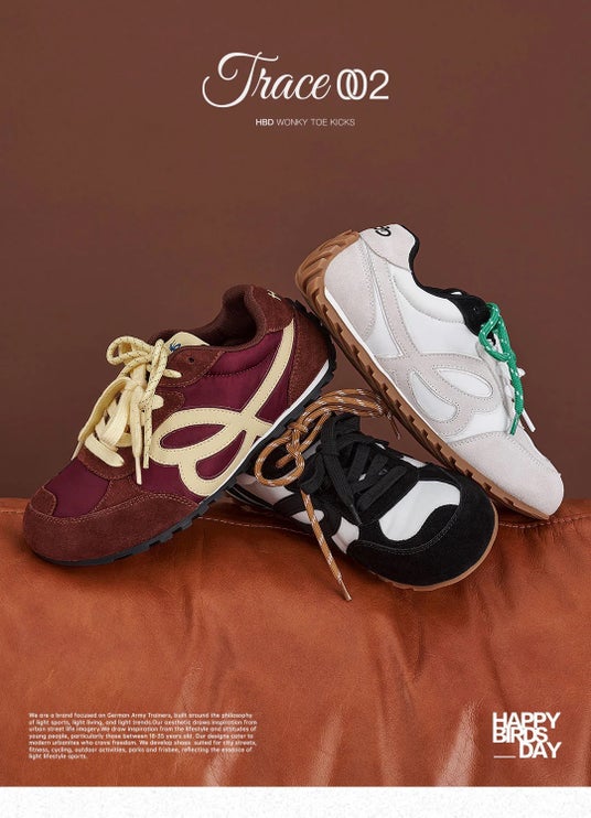 HAPPY BIRDS DAY|ハッピーバーズデイは、2023年に中国で設立されたユニセックスのシューズブランドです。このブランドは、ジャーマントレーナーのみ展開しています。若者の考え方やライフスタイルからクリエイティブなインスピレーションを得ており、ヴィンテージと新しいトレンドを組み合わせ、スポーティなスタイルをデザインに取り入れています。