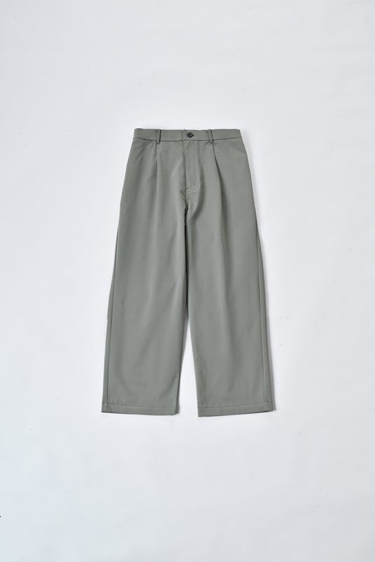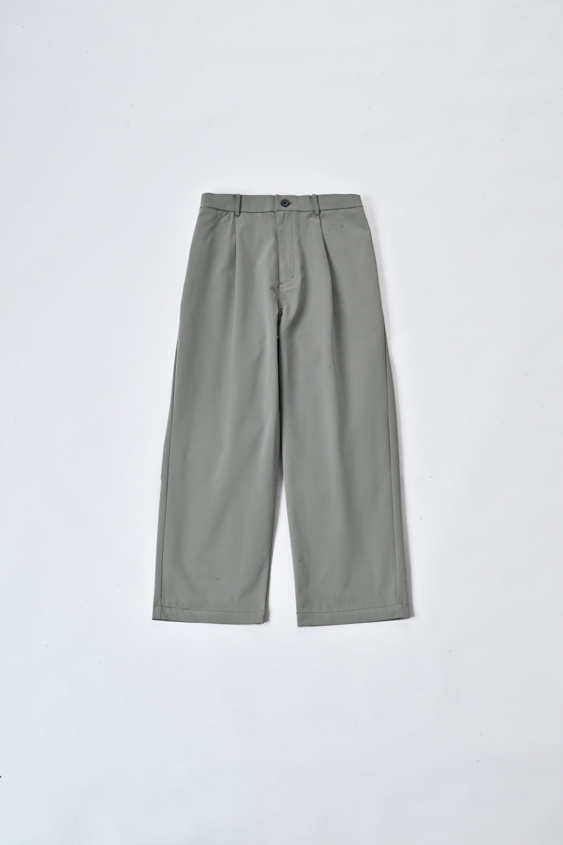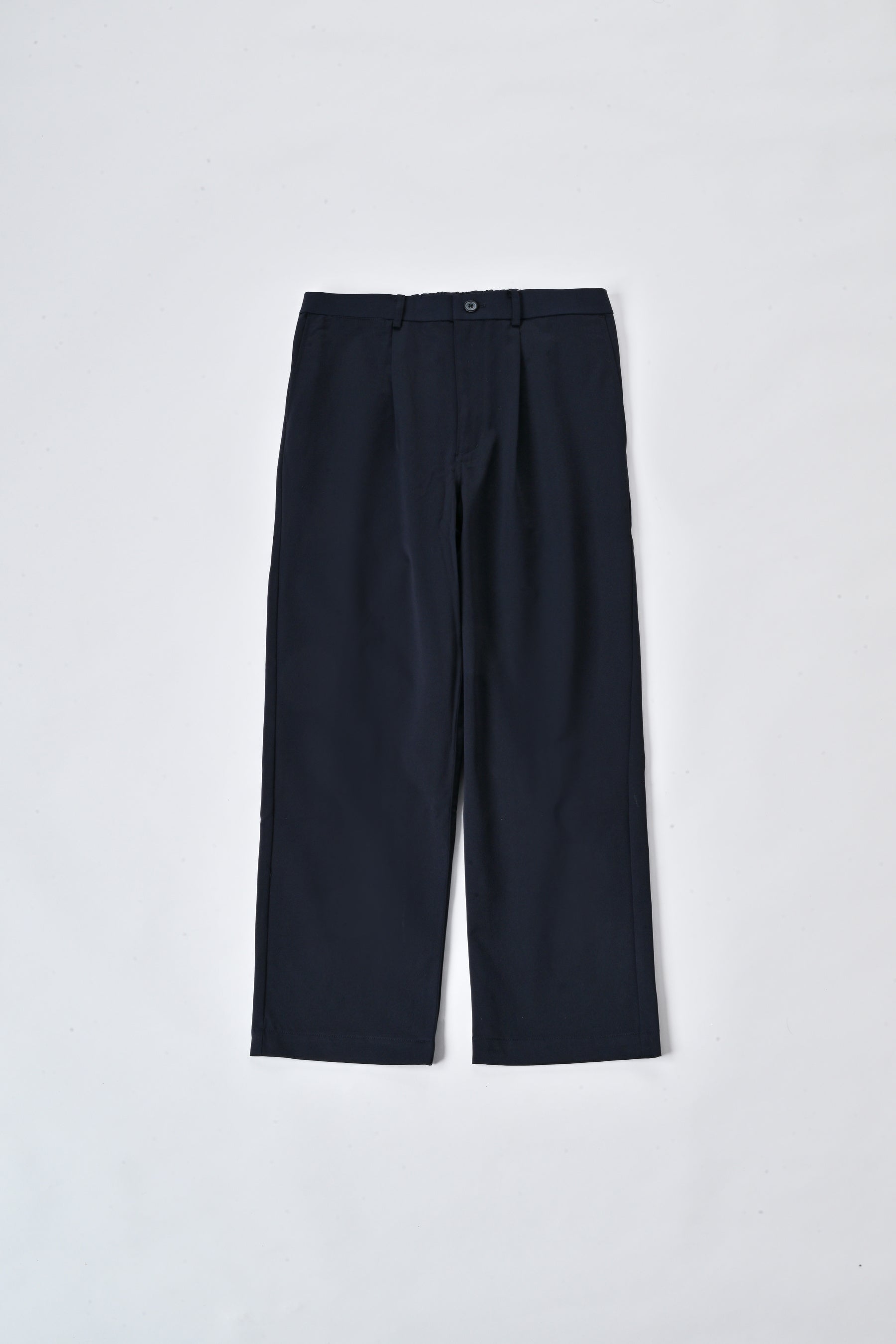 ワンタック入りでほどよいゆとりを持たせつつ、膝下はすっきりと落ちるストレートラインとなっており、幅広いシューズとバランスよく合わせられる万能パンツです。