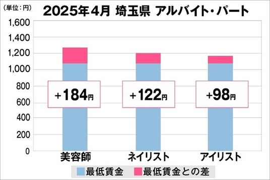 埼玉県の美容業界における採用時給料に関する調査結果(アルバイト・パート)2025年4月美プロ調べ