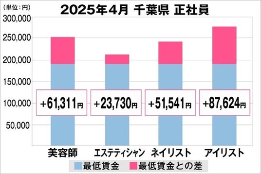 千葉県の美容業界における採用時給料に関する調査結果(正社員)2025年4月美プロ調べ