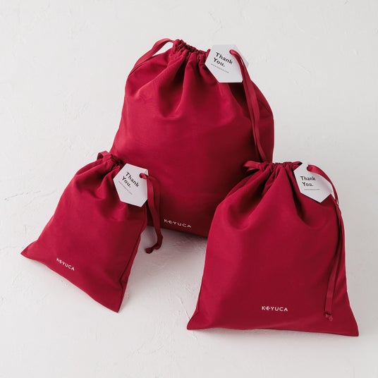クリスマス気分が上がるシックな赤色の袋と、クリスマスギフト用のタグをご用意しております。