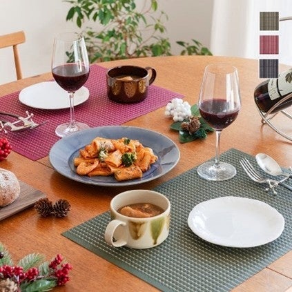 さらに、落ち着いたカラーと金色・銀色のステッチの組み合わせが華やかなランチョンマット「ゴールドステッチランチョン」や、華やかな多面体デザイン「リノチェロ フリーグラス 230ml」と合わせれば、トータルコーディネートも簡単に完成。いつもの食器に少し変化を加えるだけで、お手軽ながらも華やかな食卓が完成します。KEYUCAのアイテムでクリスマスシーンの食卓に彩りを添えて、特別なひと時をお過ごしください。