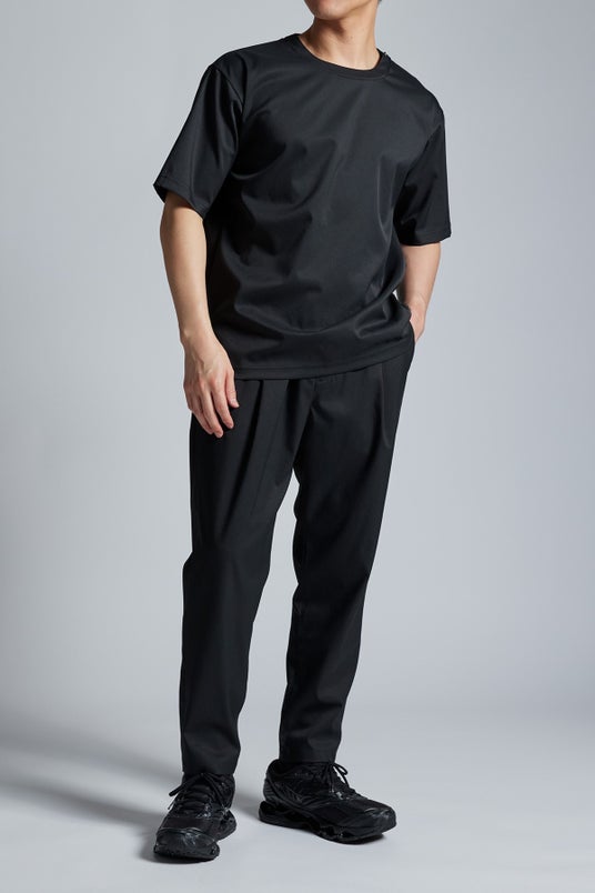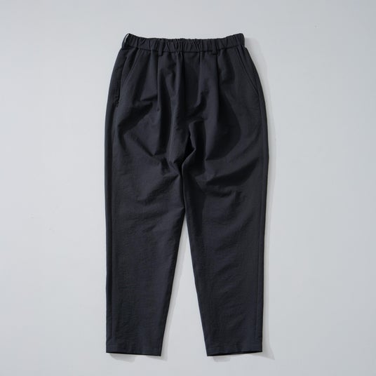 特徴:独自の新素材「ultimex」を使用した、ワンタック入りのややゆったりシルエットのイージパンツ。ウエストの紐は内側でも外側でも結べる仕様。