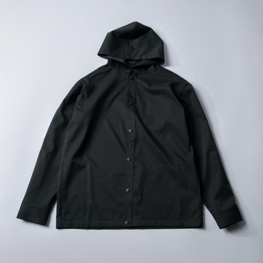 特徴:独自の新素材「ultimex」を使用した、急な天候変化にも対応できるフードブルゾン。両サイドにはポケットがついており、収納力抜群。着脱を楽にするドットボタンを使用。