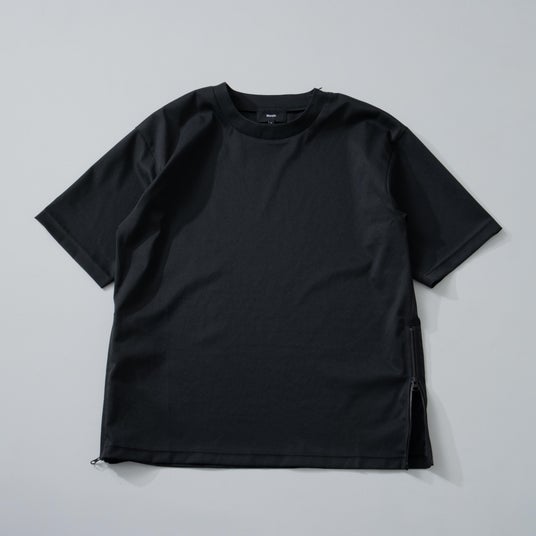 特徴:独自の新素材「ultimex」を使用した、サイドジップデザインが特徴的なTシャツ。重厚感のあるメタリックファスナーを搭載し、ファスナーを開閉することでアレンジが可能。