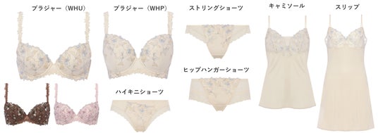 美しいアジサイの花のような「Hydrangea(ハイドレンジア)」、ロマンティックなフルムーンを連想させる「Scabiosa(スカビオサ)」、鮮やかな花色の「Anemone(アネモネ)」、華やかで多彩なカラーの「Primula(プリムラ)」、エレガントな印象の「Peony(ピオニー)」。花々の魅力を写したフェミニン&エレガントなランジェリーをお楽しみください。