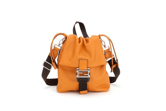 「フェンディ フラックス クロスボディ」バッグは、しなやかなスムースカーフレザーを採用し、その端正なデザインは存在感を放ちます。象徴的な「FF」ロゴモチーフをあしらったメタルバックルのフラップと、ドローストリングによる開閉が、スポーティーかつモダンな印象を与えます。さらに、バッグのサイドにはジップがスマートに配されており、移動中でもスムーズに荷物の出し入れが可能となります。内部は上質なファブリックライニングで仕上げられ、パラジウムのメタルパーツが上品な輝きを添えています。コンパクトながらもスマートフォンや身の回り品を効率的に収納できるコンパートメントを備え、機能性に優れています。カラーは、鮮やかなオレンジとシックなブラックの2色展開で、あらゆるスタイルに個性を加えます。