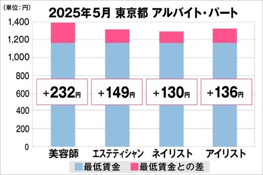 東京都の美容業界における採用時給料に関する調査結果(アルバイト・パート)2025年5月美プロ調べ