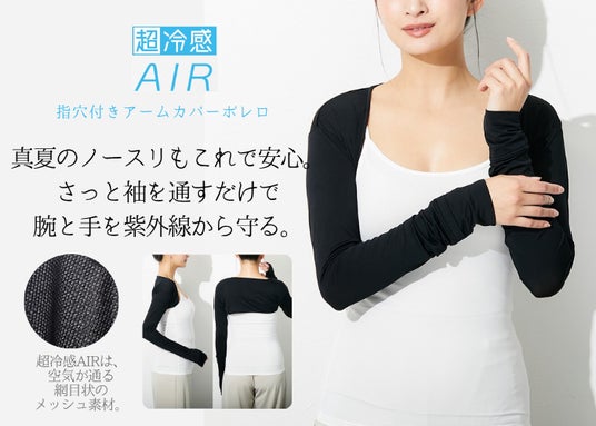 商品名:超冷感AIR 指穴付きアームカバーボレロ(接触冷感・吸汗速乾・UVカット)