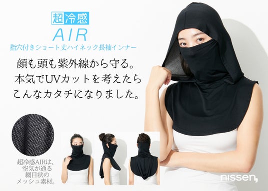 まるで忍者!?顔、頭、首と気になる部分を徹底して、あなたを紫外線からガードする冷感インナー。