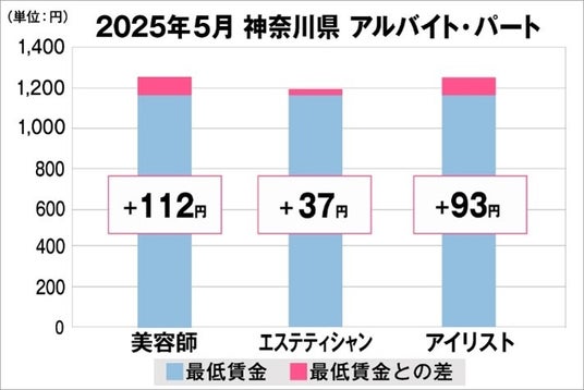 神奈川県の美容業界における採用時給料に関する調査結果(アルバイト・パート)2025年5月美プロ調べ