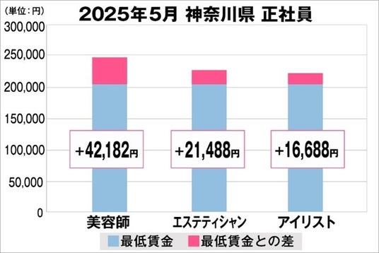 神奈川県の美容業界における採用時給料に関する調査結果(正社員)2025年5月美プロ調べ