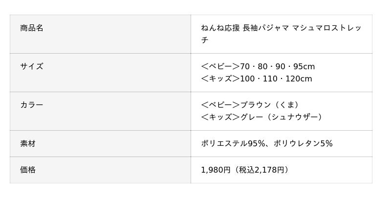 マシュマロのようなやわらかさと、もちもちの肌ざわりのあったか素材を採用しました。ベビー・キッズは昨年よりさらにサイズ展開を拡大し、70cmから120cmの幅広いサイズをご用意。ほどよい伸縮性でお子さまの寝返りをやさしくサポートします。