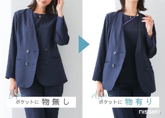 株式会社ニッセン(本社:京都市南区、代表取締役社長:羽渕 淳)は、女性の「ポケットが足りない」問題を解決する多ポケットアイテムとして、働く女性に向けた新商品「多ポケット・スーツシリーズ」を企画、開発。2025年6月28日(土)より応援購入サービス「Makuake(マクアケ)」にて先行販売をスタートし、初日で応援購入総額150万円を突破。目標金額も達成し、現在も多くの応援をいただいています。想定を大きく上回るご支援に、心より感謝申し上げます。