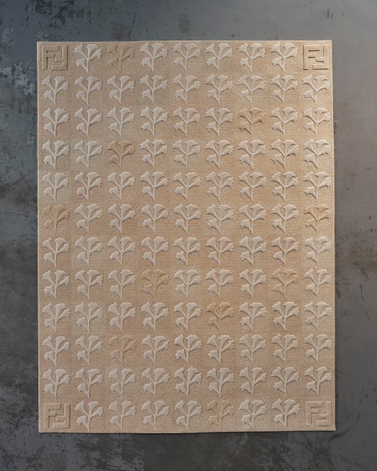「CC-タピス」による100%ウール製のラグ。全面に3Dのユリがデザインされたタイル柄が施され、4隅には手作業で立体的に仕上げた「FF」ロゴモチーフがあしらわれています。