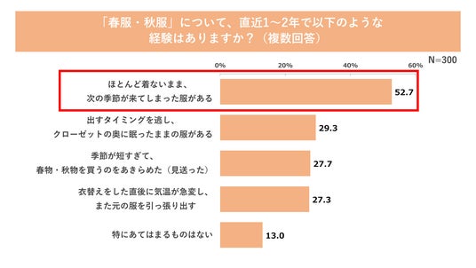 ・「春服・秋服をほとんど着ないまま、次の季節が来た経験がある」のは半数以上。