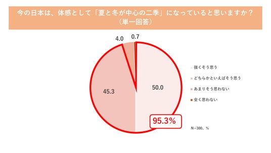 ■ 日本はもう四季ではない?約95%が「夏と冬の二季になっている」と実感!