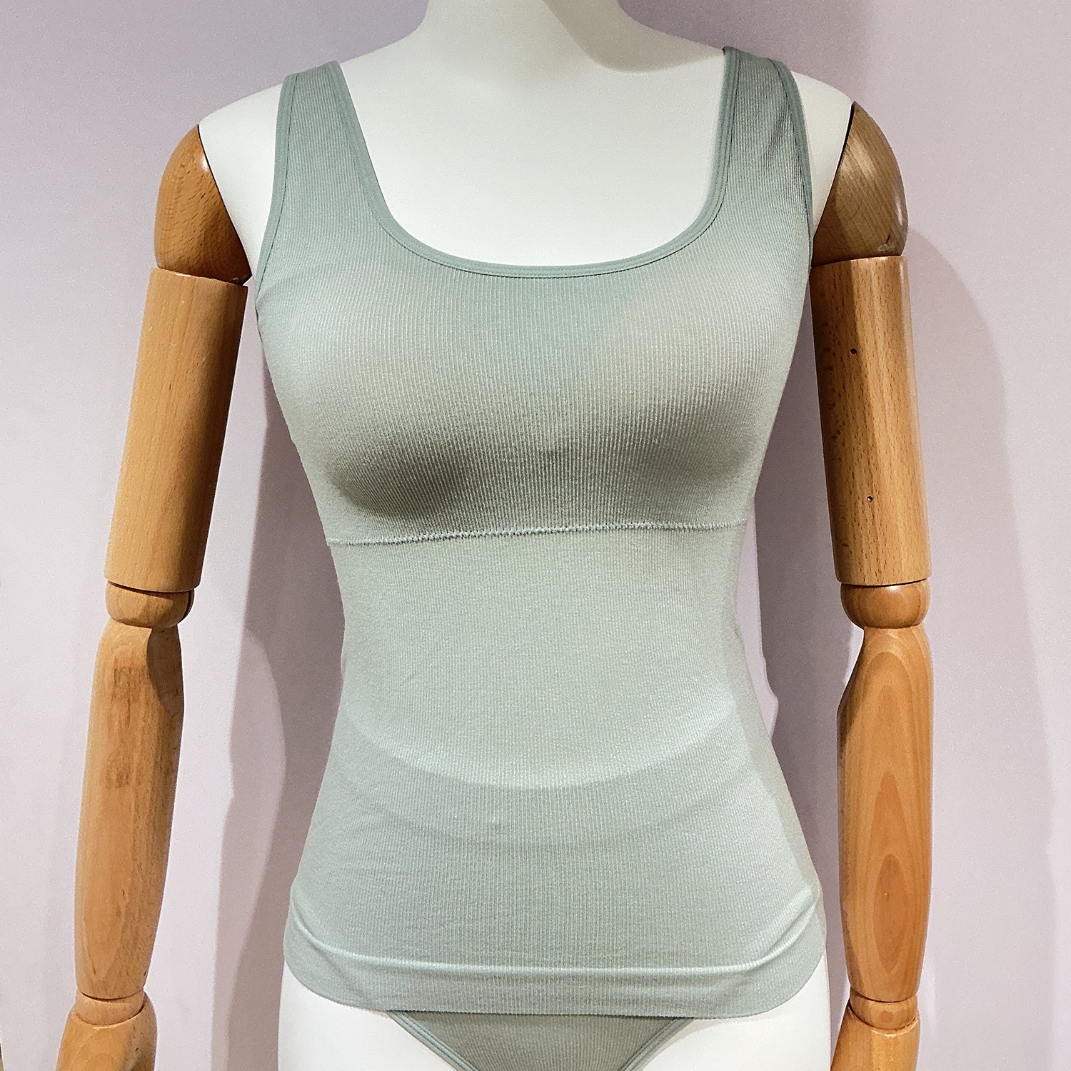脇接ぎのない成型編みでノビノビリラックスな着用感と優しい肌触りのカップ付きのキャミップです。レーヨン、リヨセル混で吸湿性、通気性に優れてオールシーズン快適に使用でき、取り外し可能なパットが入っているため、ご自身の下着を付けて着用も可能。キャミップ仕様でブラ紐が見える心配もありません。