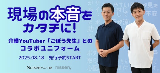 株式会社ニッセン(本社:京都市南区、代表取締役社長:羽渕 淳)が展開する医療美容・介護のユニフォームショップ「Nursereine(ナースレーヌ)」では、介護YouTuberとして人気の「ごぼう先生」こと簗瀬 寛(やなせ ひろし)さんとコラボレーションした商品の先行予約を、8月18日(月)より開始いたしました。