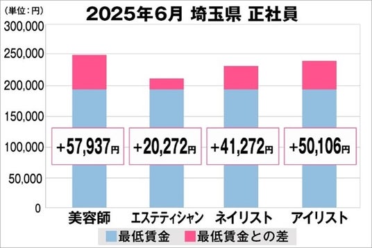 埼玉県の美容業界における採用時給料に関する調査結果(正社員)2025年6月美プロ調べ