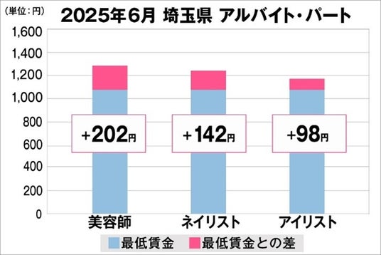 埼玉県の美容業界における採用時給料に関する調査結果(アルバイト・パート)2025年6月美プロ調べ