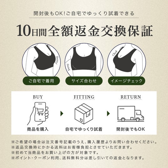 ゆっくり試せる10日間の全額返金・交換保証付きです。
