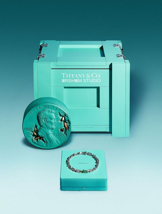 革新性、クラフトマンシップ、創造的破壊という理念を共有するティファニーとアーシャムは、2021年に初めてパートナーシップを結びました。今回のコラボレーションでは、日常的な存在である硬貨を、幸運、ラグジュアリー、そして時代を超える芸術性の象徴へと変貌させています。ティファニーが1885年に手掛けたアメリカ合衆国国章のデザインと、アーシャムが2013年に発表した「Study of the Eroded Penny(侵食した硬貨の研究)」に着想を得た「Bronze Eroded Penny Vessel(侵食した硬貨のブロンズ製ケース)」は、アーシャムの代表的な 「Future Relics(未来の遺物)」の美学を体現する彫刻です。緑青を纏った風合いのあるブロンズに、磨き上げられたクリスタルのアクセントが目を引く作品には、過去、現在、未来が見事に融合しています。