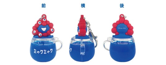 大阪・関西万博公式キャラクター「ミャクミャク」の「ウォーターインキーリング」が新登場!ミャクミャクマスコットがカップに入っているようなウォータインキーリング!本体を揺らすとカップの中の液体と銀の星ががゆらゆら揺れます。