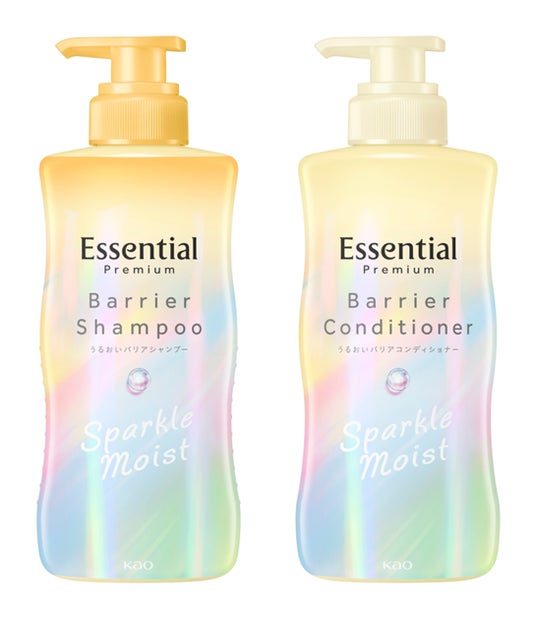 今回新たに加わるのは、繰り返すヘアカラー・ブリーチや熱アレンジなどにより傷んでしまったハイダメージ髪でも、洗い流した瞬間から驚く、新感覚のとろとろ感で、翌朝もトゥルンとしたまとまり髪がつづく『エッセンシャル プレミアム バリアシャンプー スパークルモイスト』『エッセンシャル プレミアム バリアコンディショナー スパークルモイスト』『エッセンシャル プレミアム とろ生ヘアマスク』です。