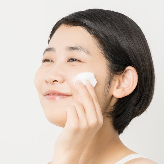 4.残った化粧液は手のひらでお顔全体になじませてください。