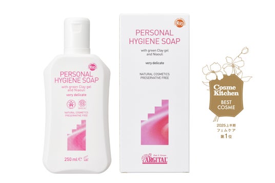 『アルジタル デリケートハイジーンソープ』は、発売から10年以上多くの方にご愛用いただいており、「Cosme Kitchen BEST COSME」フェムケア部門で3期連続1位を受賞いたしました。