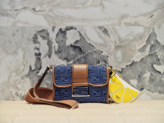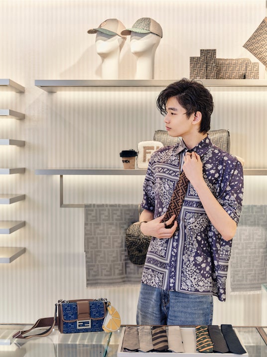 今回、パラッツォ フェンディ 表参道店に訪れた冨永章胤さんは、フェンディ 2025年サマーコレクションより、バンダナ柄がプリントされた夏らしいブルーのシャツを着用。さらに、ブルーデニム風の「FF」ロゴジャカードでアップデートされた「ダブル バゲット(Double Baguette)」バッグにレモン型のチャームをあしらい、遊び心あふれる若々しいスタイルを完成させました。