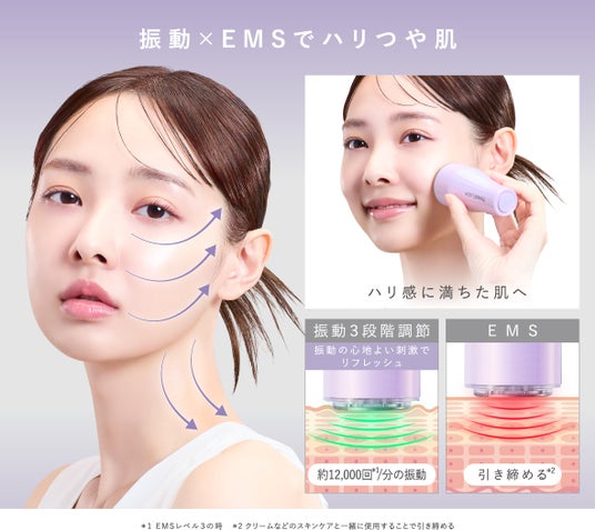 吸引によるリフトケア*1と、EMSによる筋肉刺激を組み合わせた独自アプローチにより、フェイスラインのもたつきが気になる方や、メイク前に顔印象を整えたい方へ向けたケアを実現しました。