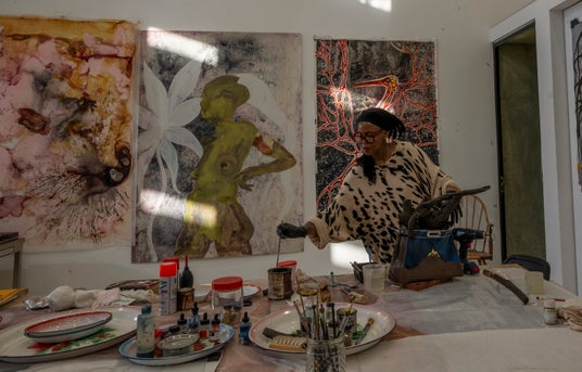 フェンディが協賛し、クロエ・ペローネがキュレーションを手がける、ワンゲキ・ムトゥによる「ブラックソイル ポエムズ」展は2025年9月14日までローマのボルゲーゼ美術館で開催されます。この機会に、ぜひワンゲキ・ムトゥの世界をご堪能ください。