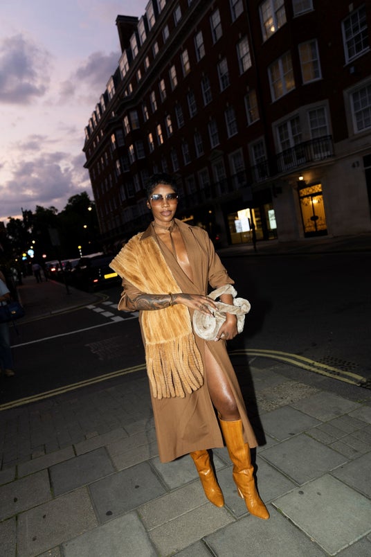 ティワ・サベージナイジェリア出身の歌手のティワ・サベージは、同イベントにて、アースカラーの「フェンディ スパイ」を着用。シアリングの贅沢な素材感が、彼女のスタイルにラグジュアリーなムードを高めています。