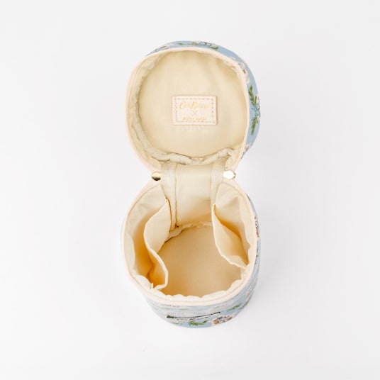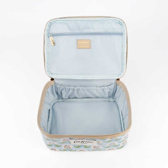 仕切りがないシンプルな仕様なので、自由度が高く、様々なアイテムを収納していただけます。キャリーケースにもスッキリおさまるサイズ感で、蓋裏にファスナーポケット付き。