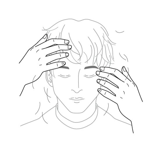 前髪の先端を2箇所くらいつまみ、毛束をつくるイメージでねじります。〈POINT1〉