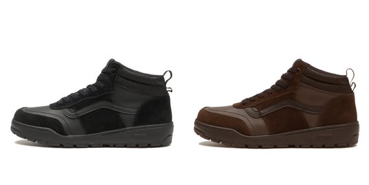 VANSブーツスニーカーは、カジュアルながらも表面撥水加工を施したアッパーや、雨の侵入を防ぐガゼット仕様のシュータンなど、日常からアウトドアまで活躍する高い防水性能を備えています。今回のビジュアルでは、悪天候の大自然を背景にした力強い世界観で、機能性とデザイン性の両立を表現しています。