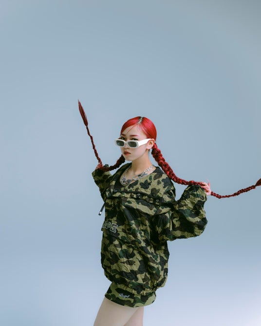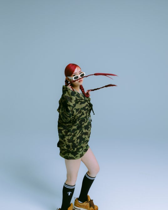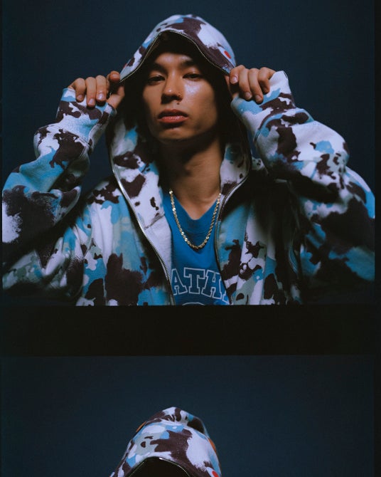 彼の自由な感性と存在感が、BAPE(R)︎の持つエッジーな魅力を自然体で引き出している。
