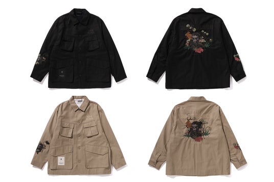 今シーズンのMAP CAMOや、APE HEADやSTAロゴの刺繍が施されたオープンカラーシャツなど、ブランドを象徴するアイテムを取り入れたスタイリングで登場。
