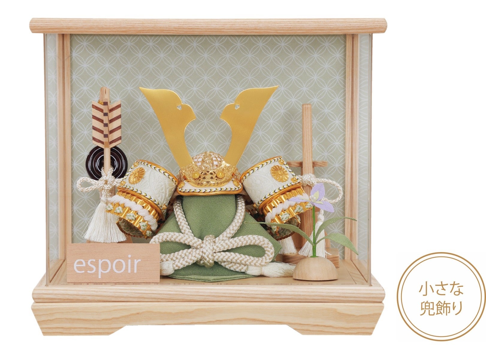 ■商品名:espoir 兜ケース飾り「木目萌葱縅中鍬形」(もくめもえぎおどしちゅうくわがた)