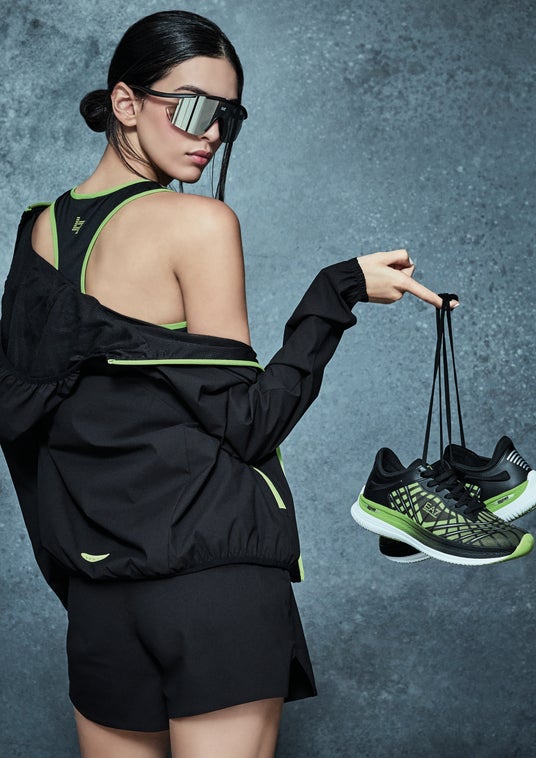 コントラストの効いたサイドロゴや、さりげないリフレクターディテールが、夜の街でも存在感を放つアクセントに。スポーツの枠を超え、ライフスタイルに自然に溶け込むデザインは、まさにEA7ならではの魅力です。