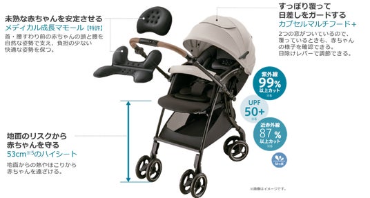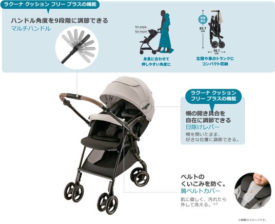 ※2:従来品との比較において、アップリカ調べ *写真の商品はラクーナ クッション AIです。