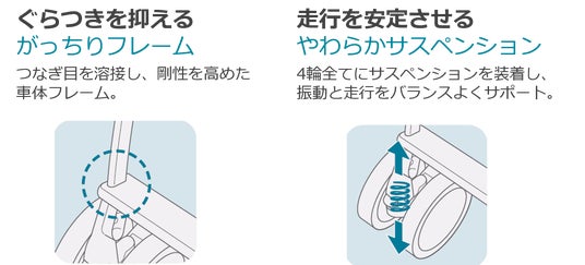 1.赤ちゃんを振動や衝撃から守る仕組みを搭載