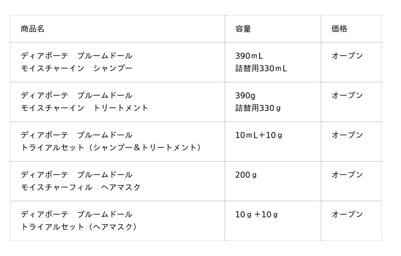 「ディアボーテHIMAWARI Bloom d'Or(ブルームドール)」は、年齢とともに変化する髪の悩みに着目し、髪内部の密度を高め、芯から美しい髪を目指す“髪の体幹美容”を採用しました。髪のゆがみに加え、乾燥浮き毛を整え、使うたび、髪の内部密度を高め、質感が変わり、まとまる、素直な髪へと導きます。