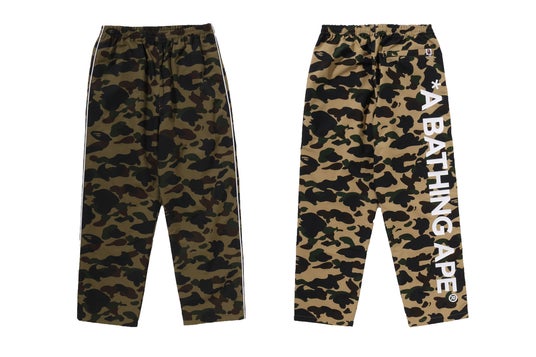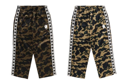 LADIES'レディースラインでは、1ST CAMO柄のMILO SHARKモチーフをフロントにラバープリントしたアイテムやカレッジデザインを含む多彩なグラフィックTシャツがラインアップ。さらに、セットアップでの着用も可能なトラックジャケットとトラックパンツも同時展開。パンツの右後ろ側にはA BATHING APE(R)ロゴをラバープリントであしらい、バックスタイルにもアクセントをプラス。機能性とファッション性を兼ね備えたアイテムで、カラーは定番のグリーンとイエローの2色展開となっています。