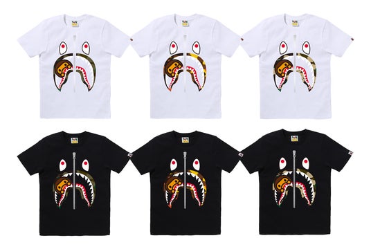 MENSメンズアイテムは、定番のグラフィックTシャツや、ジャカード織りで表現した1ST CAMO柄のポロシャツ、そしてブランドを象徴するシャークフーディーなど、多彩なラインアップが登場。