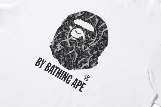 BY BATHING APE Tシャツはブラックとホワイトのベースカラーに、コラボレーションによるカモフラージュグラフィックをAPE HEADロゴにあしらった、クラシックな雰囲気が漂う、コレクター必携の一枚です。